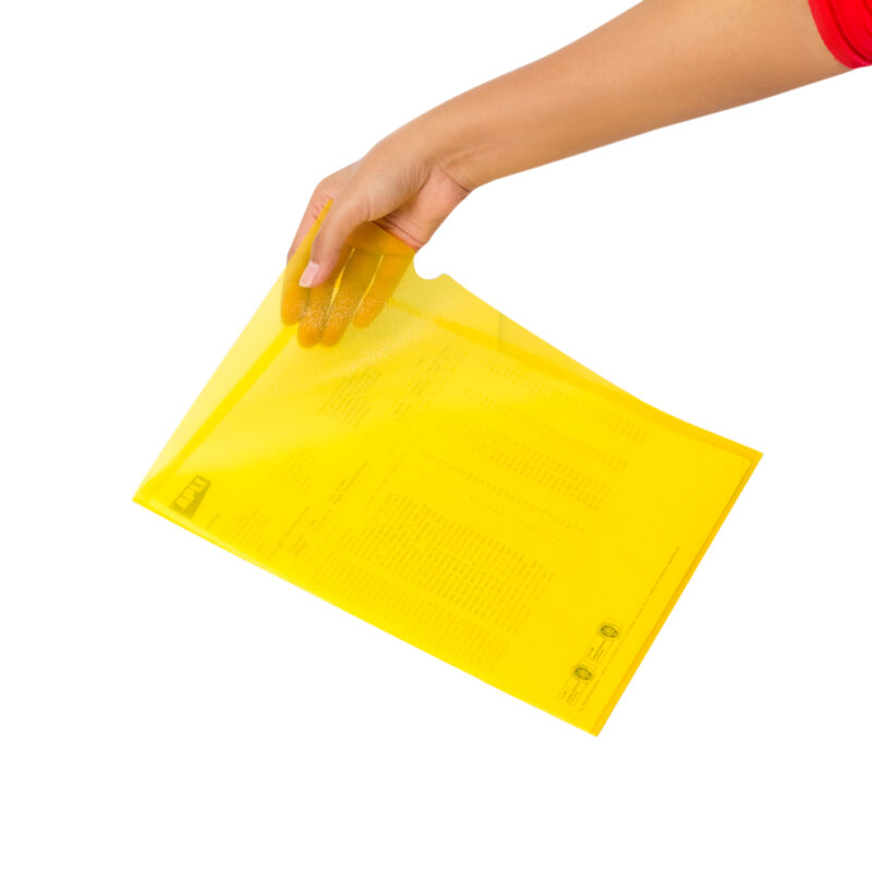 Plastic folder with transparent surface for storing actual letters or documents.