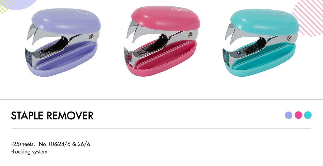 1. 24pcs/box (Packing – 24pcs/box, 288pcs/ctn) 2. 25 sheets, No.10&24/6 & 26/6 3. Locking system 4. Product Size : 52x32x30mm