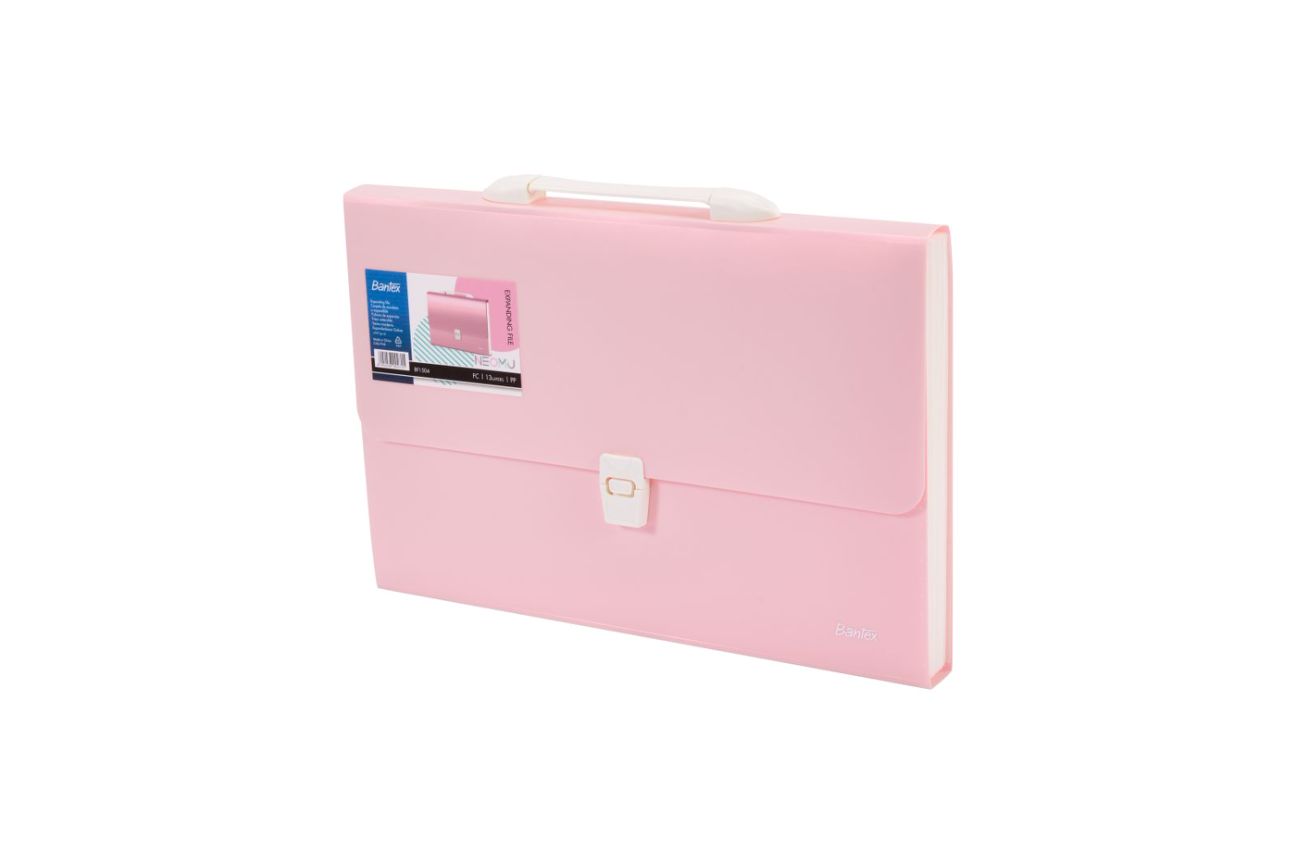 BF1504-PNK-BANTEX BF1504 F4 PP S-COLOR EXPANDING FILE 13 POCKETS W/HANDLE PINK-140018535