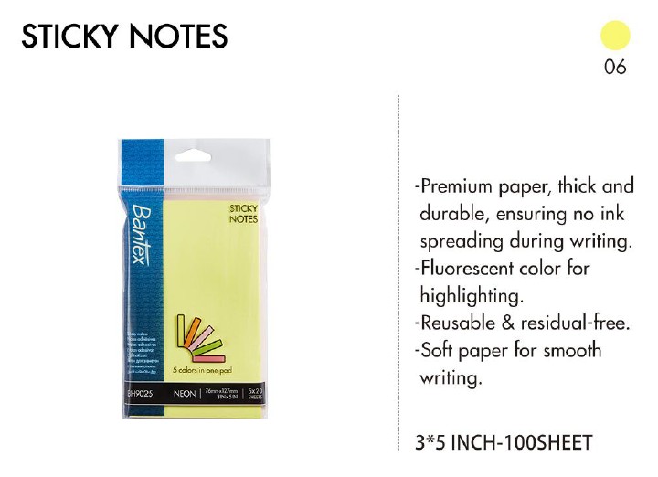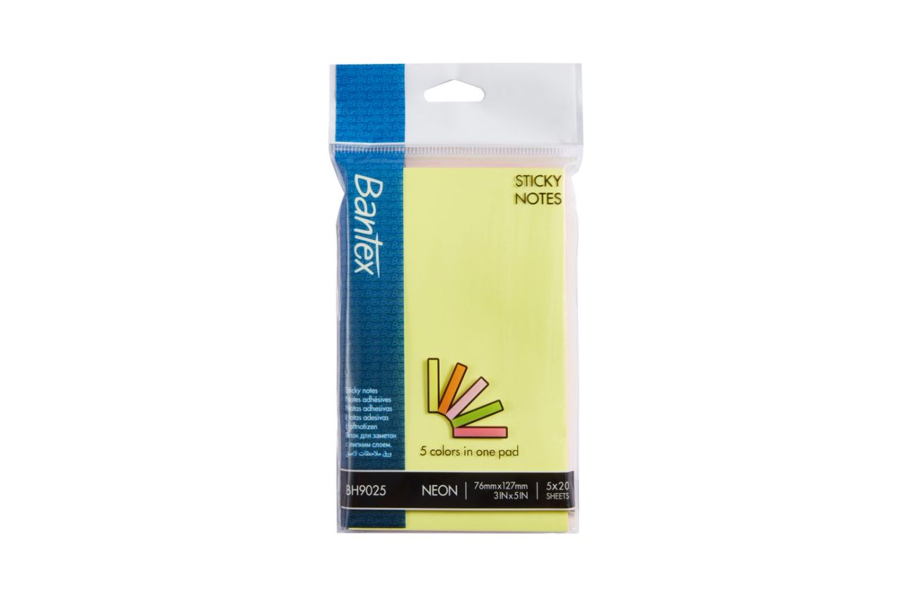 BH9025-BANTEX BH9025 STICKY NOTES 76X126MM(3X5)NEON COL 5X20SHTS-140019235