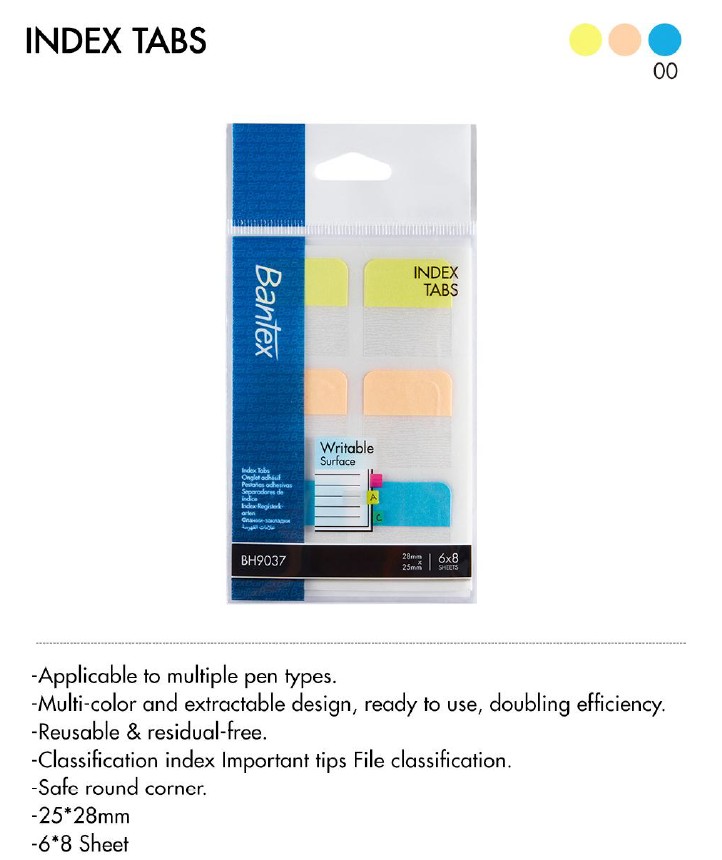 BH9037-BANTEX BH9037 INDEX TABS 25X28MM(3C)6X8’S(Y-P-B)-140019211